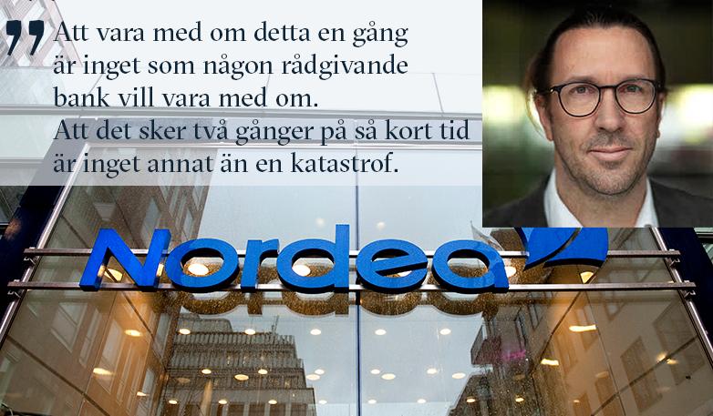 Att vara med om detta en gång är inget som någon rådgivande bank vill vara med om. Att det sker två gånger på så kort tid är inget annat än en katastrof.