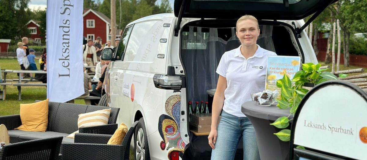 Leksands Sparbank kör under sommaren Dalarna runt i sin nya bankbuss. Tanken är att öka tillgängligheten och hjälpa kunderna med folkbildning och digital inkludering. Turnéplanen innehåller stopp på Roliga Torsdagen, Insjödagarna och Dalhalla där folkpopduon First Aid Kit ska spela.