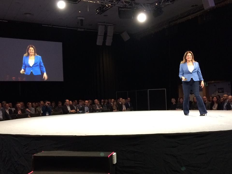 De hälsade varandra med en highfive och presenterade snart dagens första talare: Marjan Mohsenin från tankesmedjan Singularity University som föreläste om att ny teknik utvecklas exponentiellt och inte linjärt.