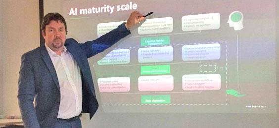Han trycker på att det är viktigare än någonsin att ta reda på hur ens affär ser ut och vad ens nya roll i värdekedjan är när disruptiv teknik som AI nu börjar få stort genomslag i många branscher. Inte minst inom bank och finans.