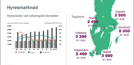 Fastighetsbolagets hyresintäkter för perioden januari-mars 2017 uppgick till 1,3 miljarder kronor jämfört med 855 miljoner för motsvarande period i fjol. Förvaltningsresultatet uppgick till 592 miljoner kronor (376), motsvarande 2,17 kronor per aktie, en ökning med 9 procent från 1,99 kronor i fjol.