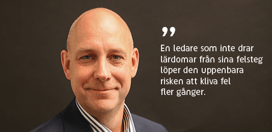 Det mycket goda självförtroendet slår nämligen ofta över i arrogans. Då får man istället en ledare som överskattar sitt eget kunnande och sina egna förmågor, som har svårt att lyssna på andra och som inte ser sina egna begränsningar. Arroganta ledare tar sällan ansvar när saker går snett eller lär sig av sina misstag. Och en ledare som inte drar lärdomar från sina felsteg löper den uppenbara risken att kliva fel fler gånger.