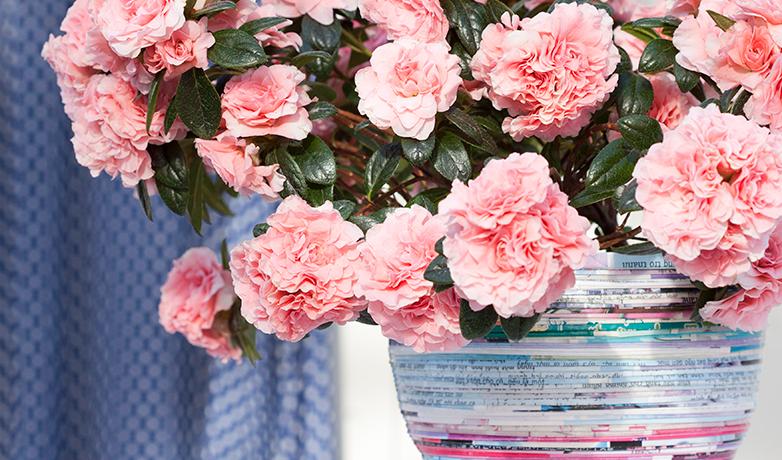 De vårblommande azaleorna tillhör Rhododendron simsii-familjen och härstammar från Himalayas bergstrakter i Kina och Japan.