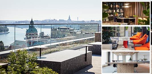 Från kontorsterrassens sittpunkter kan personalen blick ut över